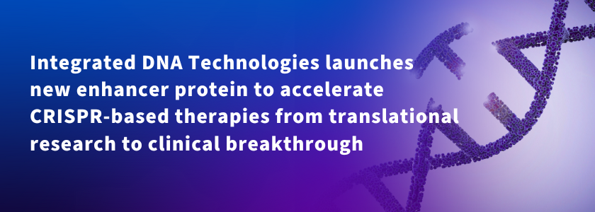 The Alt-R HDR Enhancer Protein is available in RUO format at 500 μg and 5 mg with CGMP grade to follow. The enhancer protein seamlessly integrates into existing workflows and is compatible with different Cas systems and common delivery methods. IDT’s complete CRISPR workflow—from discovery to clinical applications—continues to support gene editing pioneers with optimized Cas9 and Cas12a systems, customizable gRNAs, HDR solutions, CGMP manufacturing and analysis tools and services backed by expert support. These key components have been foundational to enabling some of the world’s greatest genomic breakthroughs, including the world’s first personalized CRISPR therapy.